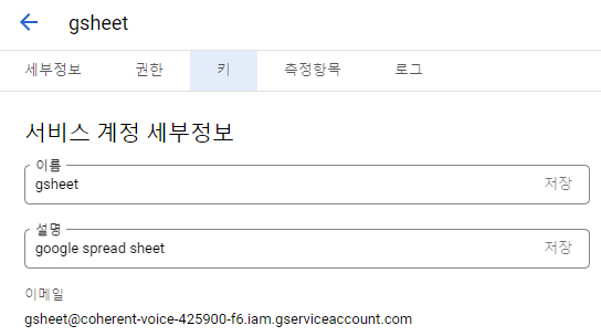 ( 생성한 서비스 계정으로 접근 -> 키 선택 )