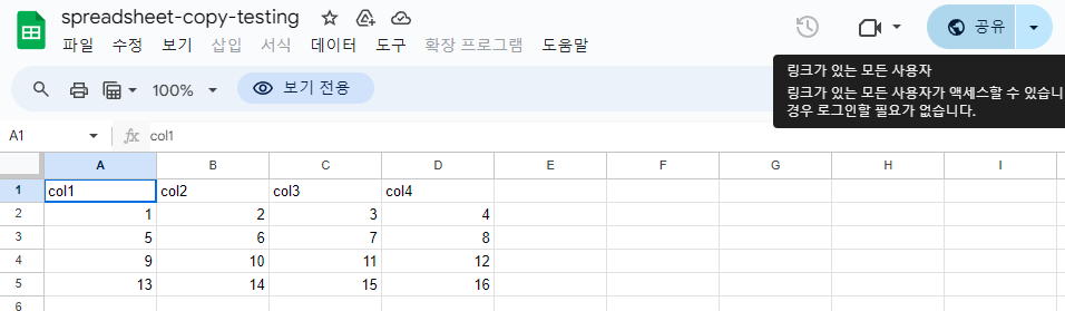 Account에서 생성한 이메일을 Google Sheets에 공유
