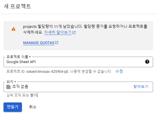 Google Spreadsheets API 활성화
