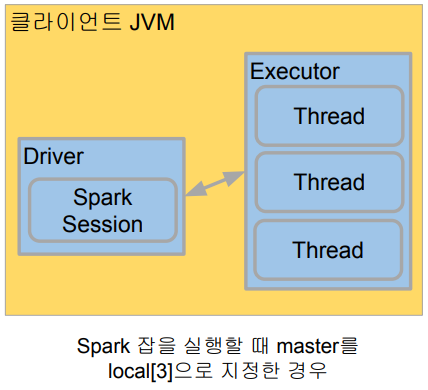 ( master로 리소스 매니저를 지정 가능, YARN으로 지정하면 YARN이 되고, local[n]으로 지정하면 현재 로컬 컴퓨터가 됨 )
