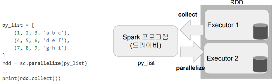 일반 파이썬 데이터는 parallelize 함수로 RDD로 변환