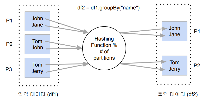 Map이나 Filter 같은 경우는 파티션 안의 데이터 만으로 충분한 Operation이기 때문에 데이터의 서버 간 이동이 필요없지만,