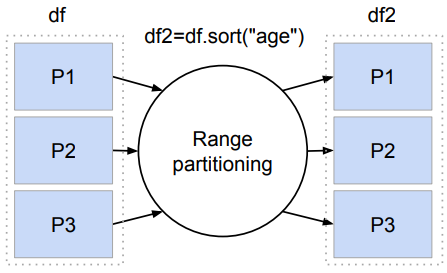 -> sorting의 경우 range partition을 사용