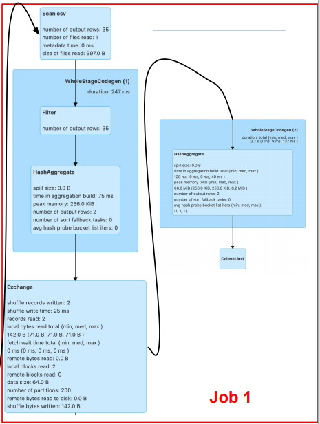 Suffling 없이 독립적으로 병렬적으로 가능한 연산들을 뜻합니다.예를 들어, 하나의 Job에 Suffling이 생긴다면?