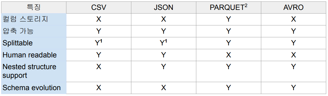 처리하려는 데이터가 어떤 파일 포맷으로 저장되어있는 지에 따라 성능에 큰 영향을 미칩니다.