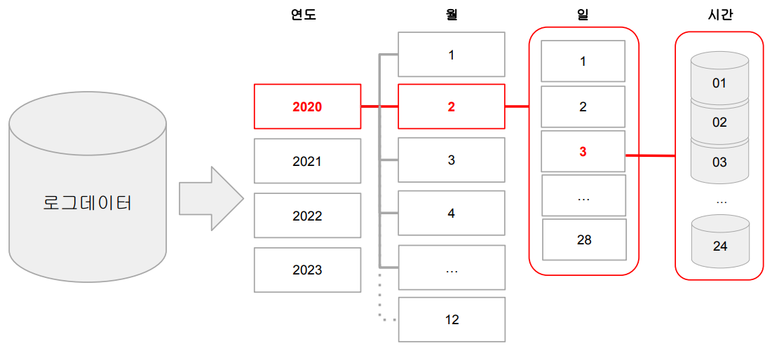 ( 최상위 폴더를 연도로, 그 하위를 월, 그 하위를 일 폴더로 지정하여 데이터를 나눠 저장하는 방식 )