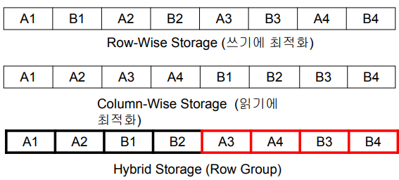같은 Row Group 안에서는 Column-Wise로 저장즉, 정리하면