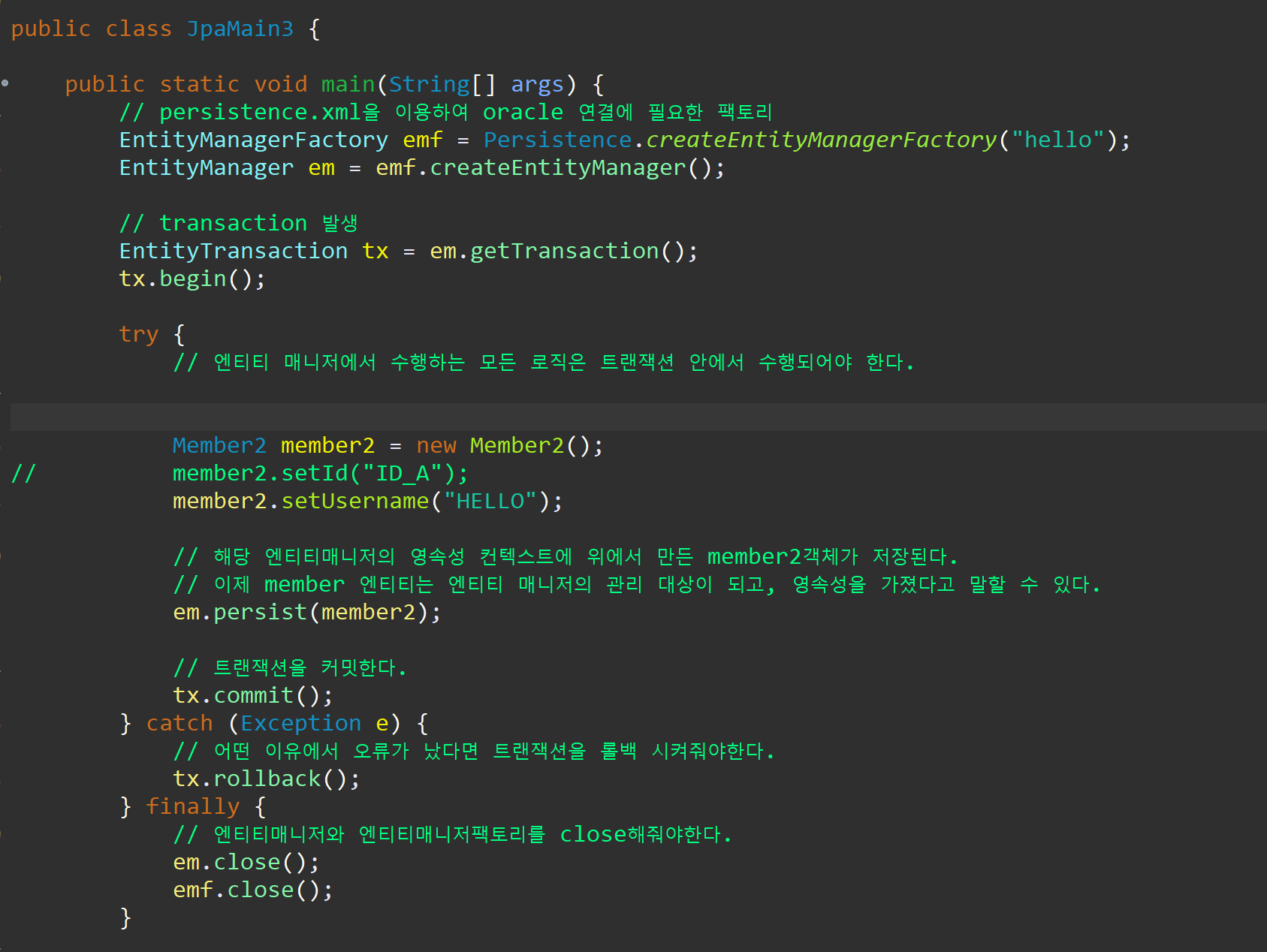 // 커밋하는 순간 데이터베이스에 insert sql을 보낸다.
