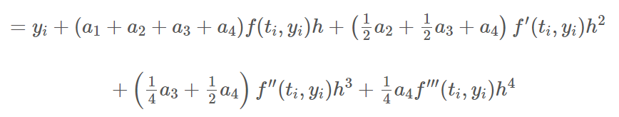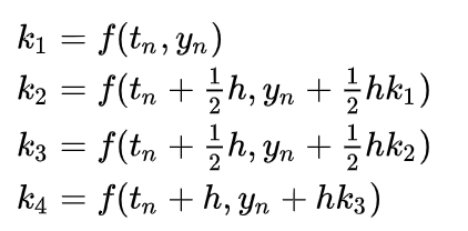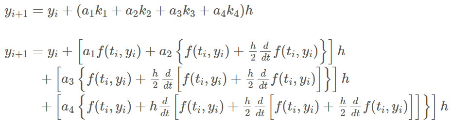 이를 룽게 쿠타 방법의 기본 형태의 식에 대입하여 주면 결과적으로 다음 식을 얻을 수 있다.