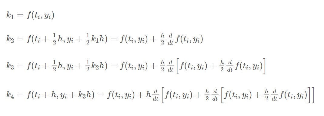 해당 식들은 룽게 쿠타 방법에서의 중요한 의미를 지니며, 최종적으로 유도된 식에서도