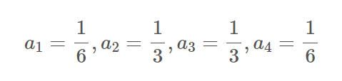위의 두 식을 연립하여 a1~a4 를 확정하여 주면, 최종적으로 다음과 같이 표현된다.