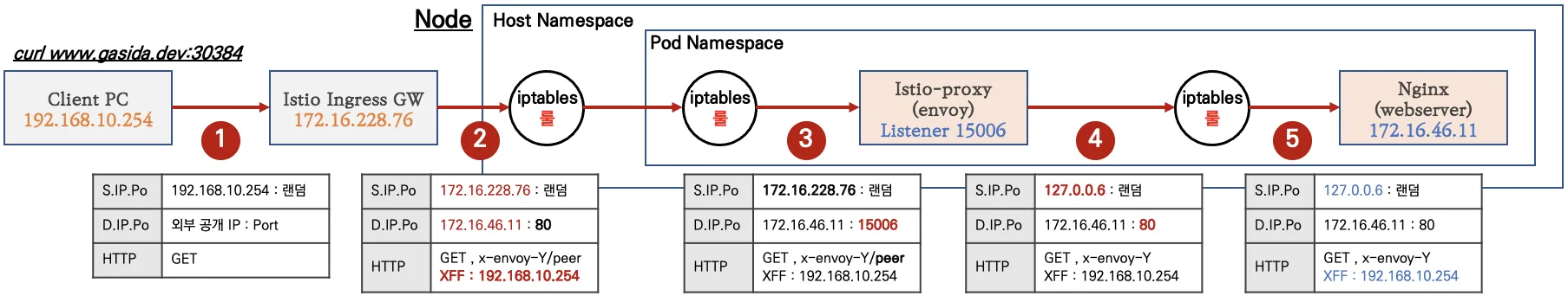 - 엔보이 엔드포인트는 요청을 처리하는 워크로드의 IP 주소를 나타낸다.