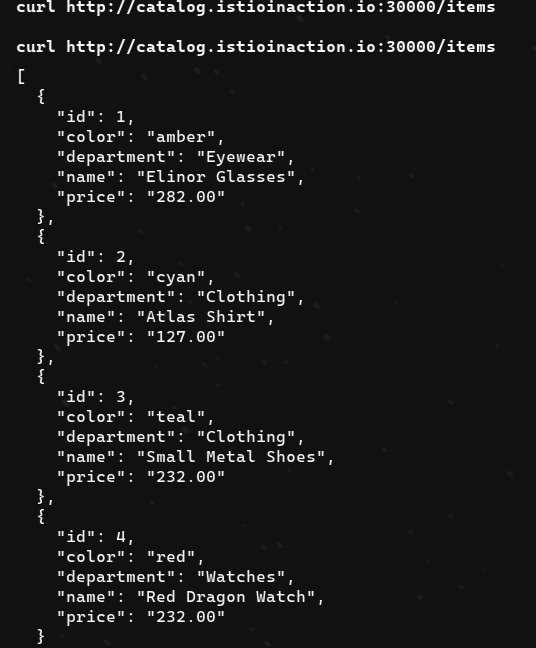 kubectl apply -f services/catalog/kubernetes/catalog.yaml -n istioinaction # catalog v1 배포