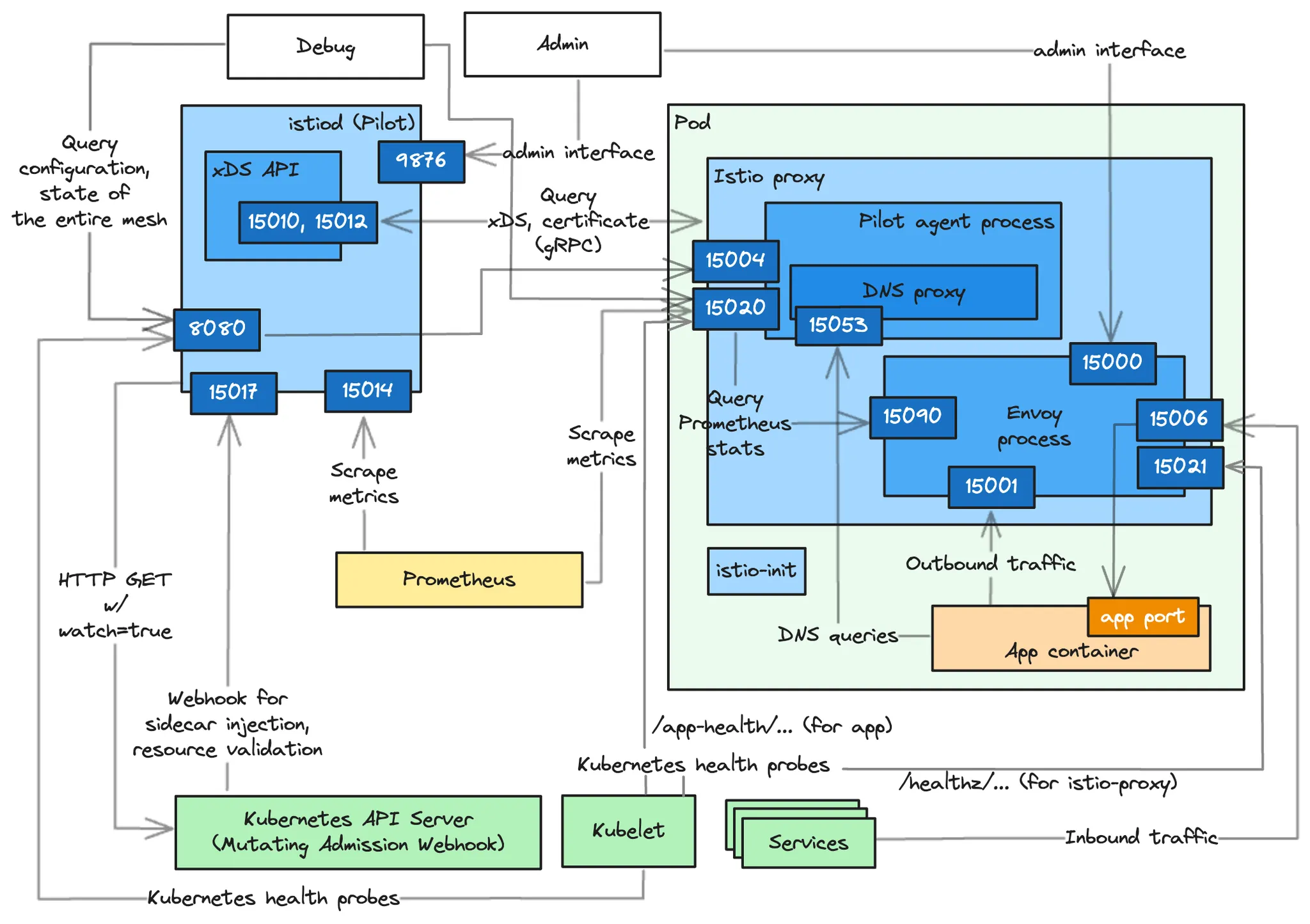 kubectl -n istio-system exec -it deploy/istiod -- ss -tnlp