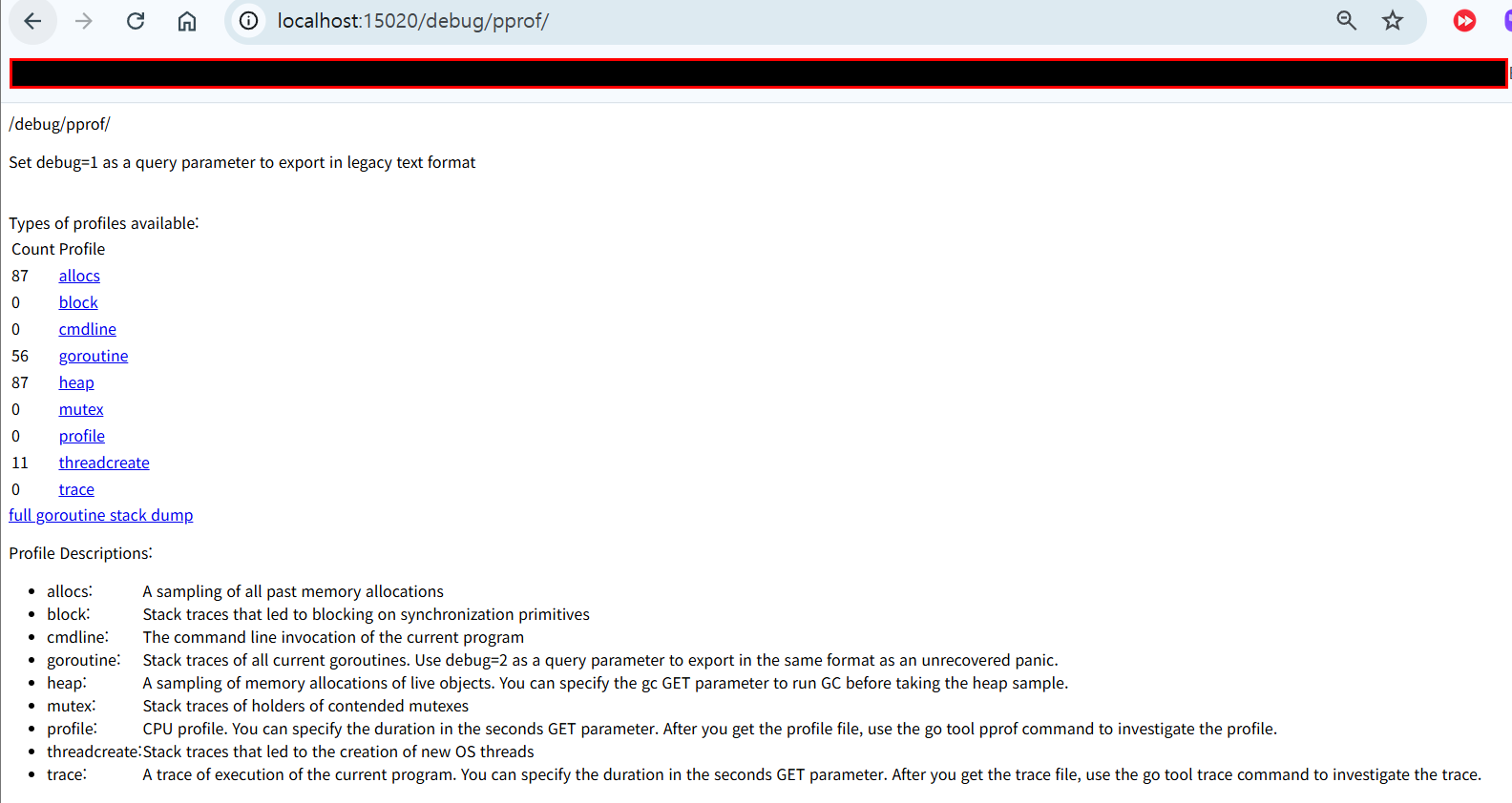 | 메모리 사용량 | 이 정보는 Go 런타임에서 수집되며 이 프로세스의 메모리 소비량을 나타낸다. |