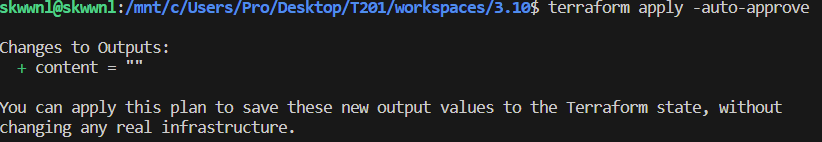 local_file.foo: Creation complete after 0s [id=3c3b274d119ff5a5ec6c1e215c1cb794d9973ac1]
