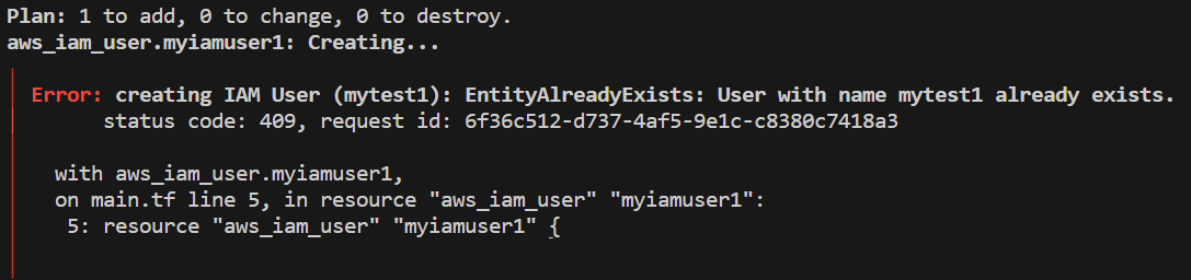 plan이 참조하는 State 파일이 없으므로 생성하지만, apply에서 실제로 생성하게되면 존재하기에 에러가 발생한다.