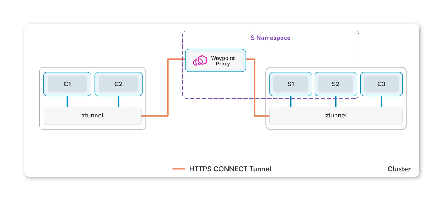 이 모드에서 작동하는 네임스페이스는 하나 이상의 Envoy 기반 *웨이포인트 프록시를* 사용하여 해당 네임스페이스의 워크로드에 대한 L7 처리를 처리합니다.