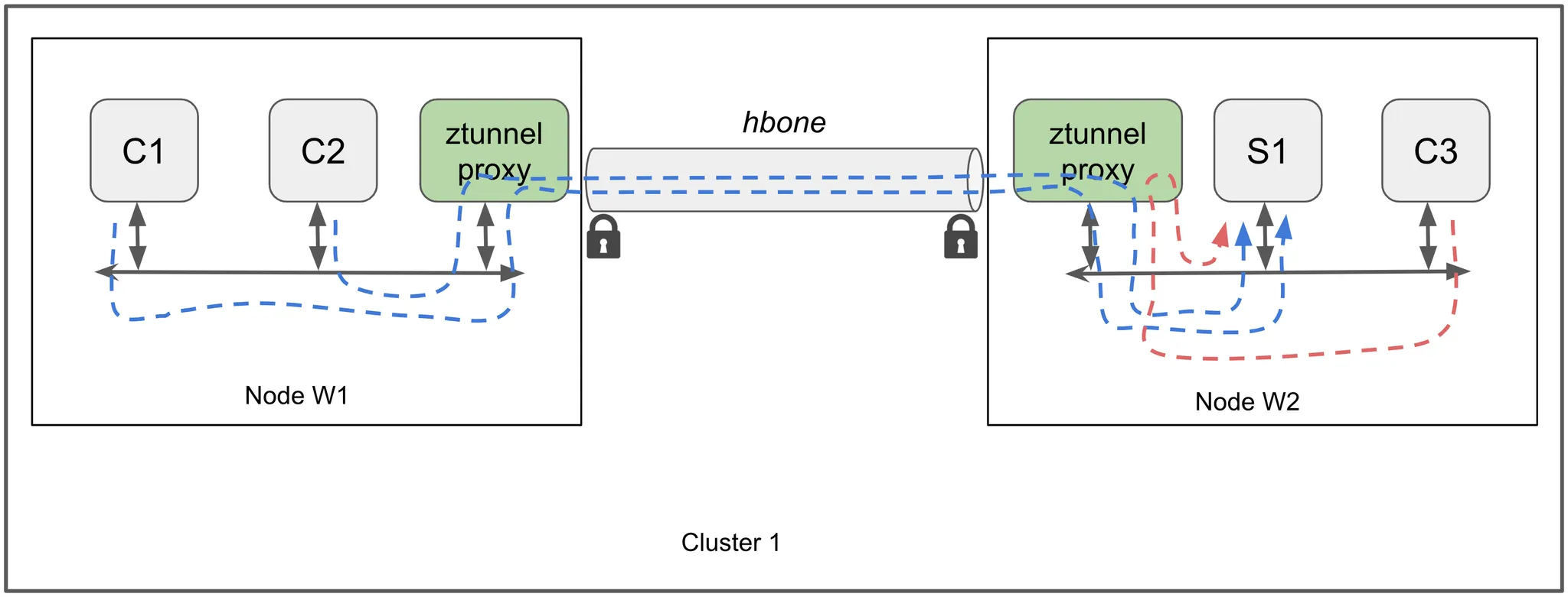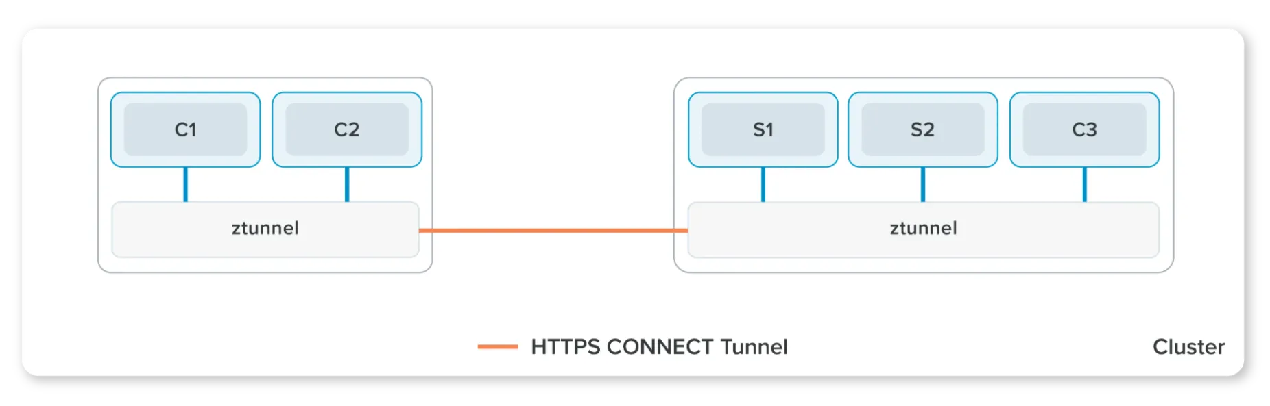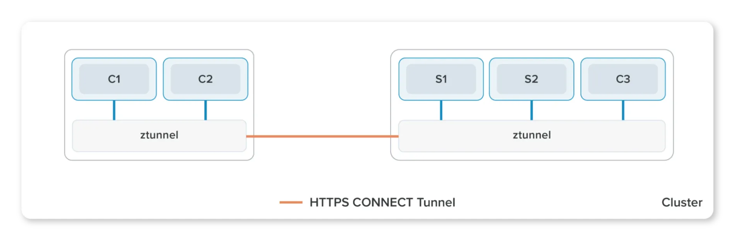 - ztunnel은 HTTPS 터널을 사용하여 사용자 요청을 전달합니다.