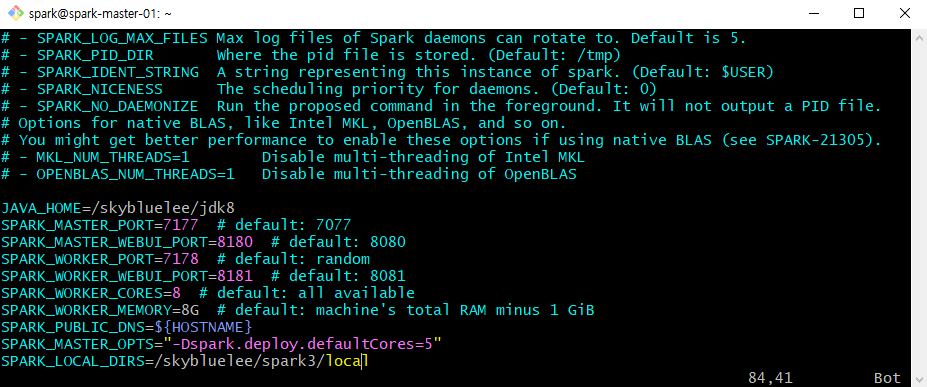 $ vi /skybluelee/spark3/conf/spark-env.sh