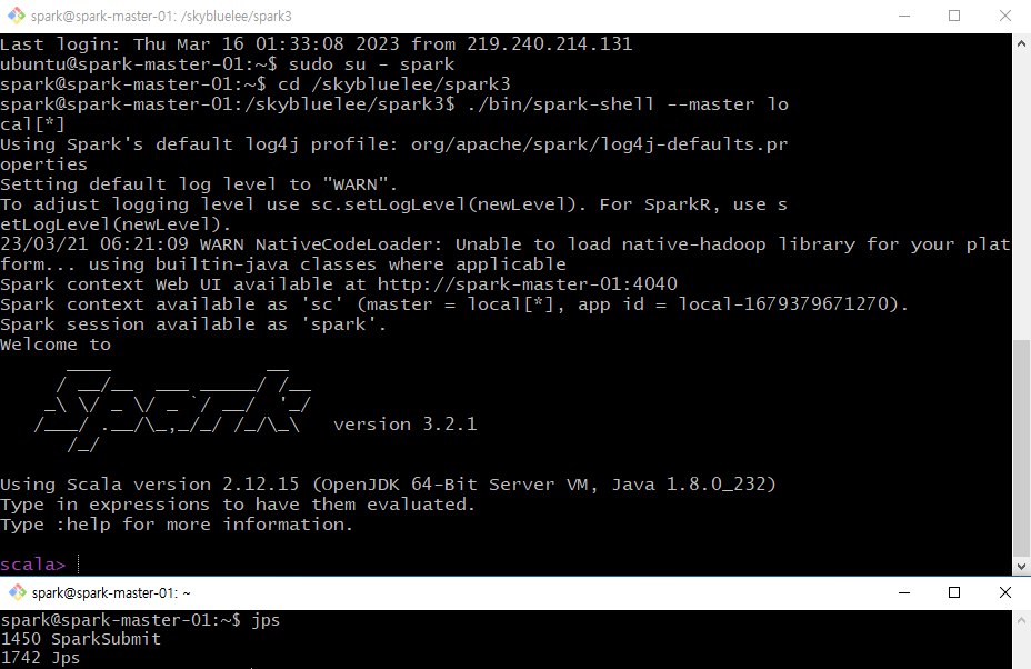 $ ./bin/spark-shell --master spark://spark-master-01:7177
