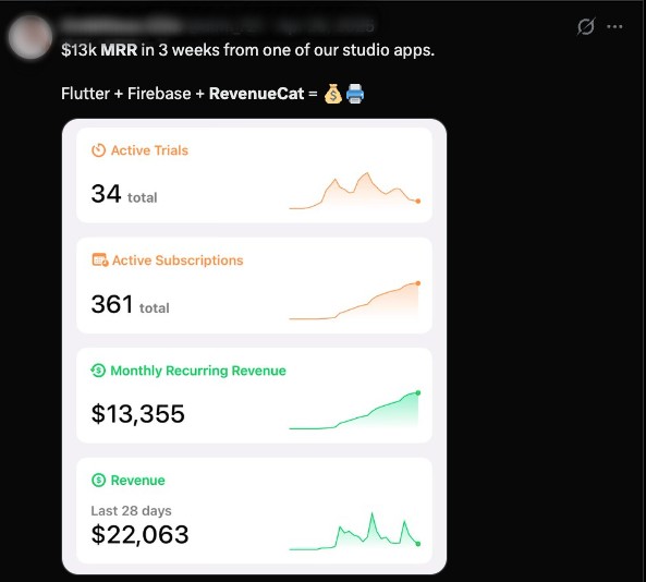 특히 AI가 급격하게 발전하고 있는 AI 시대에, 누구나 본인의 앱을 기획과 디자인부터 개발까지 모든 과정을 처리할 수 있게 되었고, RevenueCat을 사용하여 빠르게 구독 모델을 붙이고, A/B 테스팅과 experimental을 통하여 최적화된 마켓 구독 가격을 발견하여, 월간 반복 수익 (MRR, monthly recurring revenue)을 대기업 월급만큼 혹은 그의 몇 배씩 수익을 내는 1인 개발자들을 흔하게 찾아볼 수 있게 되었습니다.