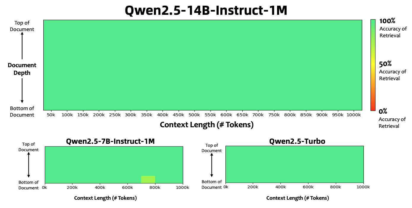 Qwen2.5-1M ์๋ฆฌ์ฆ๋ ํ์ฌ ์คํ์์ค ๋ชจ๋ธ์ธ Qwen2.5-7B-Instruct-1M, Qwen2.5-14B-Instruct-1M๊ณผ API ์ ๊ทผ์ด ๊ฐ๋ฅํ Qwen2.5-Turbo๋ฅผ ํฌํจํฉ๋๋ค. ํ๊ฐ ๊ฒฐ๊ณผ, ์ด ๋ชจ๋ธ๋ค์ ์งง์ ์ปจํ ์คํธ์์์ ์ฑ๋ฅ์ ์ ์งํ๋ฉด์ ๊ธด ์ปจํ ์คํธ ์์ ์์ ํฐ ํฅ์์ ๋ณด์์ต๋๋ค. ํนํ Qwen2.5-14B-Instruct-1M ๋ชจ๋ธ์ ๊ธด ์ปจํ ์คํธ ์์ ์์ GPT-4o-mini๋ฅผ ํฌ๊ฒ ์์ฐ๊ณ , 8๋ฐฐ ๋ ๊ธด ์ปจํ ์คํธ๋ฅผ ์ง์ํฉ๋๋ค.