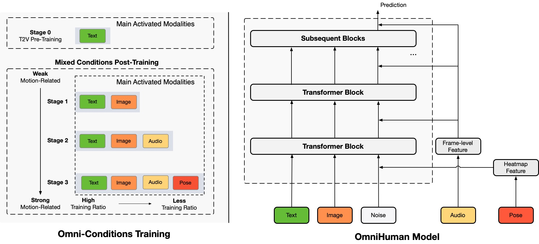 OmniHuman์ ์ธ๊ณต์ง๋ฅ์ ํ์ฉํด ์ฌ๋์ ์์ง์์ ์์ฐ์ค๋ฝ๊ฒ ์์ฑํ๋ ์๋ก์ด ์์คํ ์ ์๊ฐํ๋ ์ฐ๊ตฌ์ ๋๋ค. ์ต๊ทผ ๋ช ๋ ๊ฐ ์์ฑ์ ๊ธฐ๋ฐ์ผ๋ก ๋งํ๋ ์ฌ๋์ ์์์ ๋ง๋๋ ๊ธฐ์ ์ด ๋ง์ด ๋ฐ์ ํ์ง๋ง, ์ค์ ์์ฉํ๊ธฐ์๋ ์ฌ์ ํ ํ๊ณ๊ฐ ์์์ต๋๋ค. ์ด๋ฌํ ํ๊ณ๋ฅผ ๊ทน๋ณตํ๊ธฐ ์ํด ์ฐ๊ตฌ์ง์ '๋ํจ์ ํธ๋์คํฌ๋จธ'๋ผ๋ AI ๊ธฐ์ ์ ๊ธฐ๋ฐ์ผ๋ก OmniHuman์ ๊ฐ๋ฐํ์ต๋๋ค.