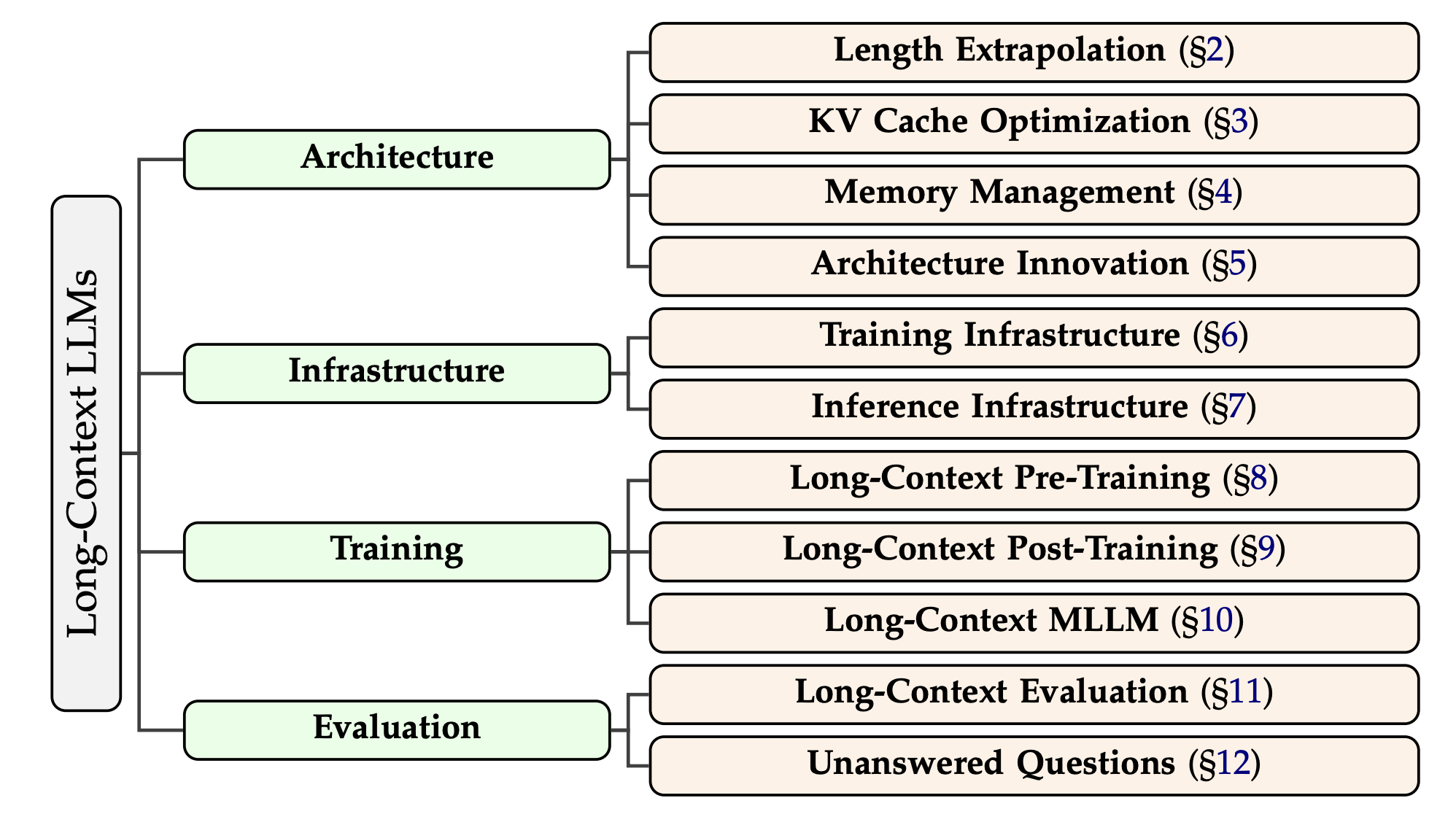 ๊ธด ๋งฅ๋ฝ ์ฒ๋ฆฌ๋ ์ต๊ทผ ์์ฐ์ด ์ฒ๋ฆฌ(NLP) ๋ถ์ผ์์ ๊ฐ์ฅ ํ๋ฐํ ์ฐ๊ตฌ ์ฃผ์ ์ค ํ๋์ด๋ฉฐ, ํนํ ๋ํ ์ธ์ด ๋ชจ๋ธ(LLM)์ ๊ฒฝ์๋ ฅ์ ๋์ด๋ ํต์ฌ ์์๋ก ๋ ์ค๋ฅด๊ณ ์์ต๋๋ค. ์ด ๋ ผ๋ฌธ์์๋ ์ต๊ทผ 2๋ ๋์ LLM์ ๋งฅ๋ฝ ์ฒ๋ฆฌ ๊ธธ์ด๊ฐ ์์ฒ ํ ํฐ์์ ์๋ฐฑ๋ง ํ ํฐ ๋จ์๊น์ง ํ์ฅ๋ ํํฉ์ ์กฐ๋งํ๊ณ , ์ด๋ฅผ ๋จ์ํ ๊ธธ์ด๋ฅผ ๋๋ฆฌ๋ ์ฐจ์์ ๋์ด ๊ตฌ์กฐ(architecture), ์ธํ๋ผ(infrastructure), ํ๋ จ ๋ฐฉ๋ฒ(training), ํ๊ฐ ๋ฐฉ๋ฒ(evaluation) ๋ฑ ์ข ํฉ์ ์ธ ๊ด์ ์์ ๋ถ์ํ์ต๋๋ค. ์ฐ๊ตฌ์ง์ ๊ธด ๋งฅ๋ฝ ์ฒ๋ฆฌ๋ผ๋ ๋์ ๊ณผ์ ๋ฅผ ์ธ๊ฐ์ด ์๋ช ์ ํ๊ณ๋ฅผ ์ด์ํ๋ ค๋ ๋ ธ๋ ฅ์ ๋น์ ํ์ฌ, ๋ง์น ์ธ๊ฐ์ ์ ํ์ฑ์ ๊ทน๋ณตํ๋ ค๋ ์๋๊ฐ ๊ฒฐ๊ตญ ์ ํ์ฑ ์์ฒด๋ฅผ ๋ฐ์๋ค์ฌ์ผ ํ๋ ๊ฒ์ฒ๋ผ LLM ๋ํ ๊ธด ๋งฅ๋ฝ์ ๋ํ ๋ฌดํํ ์๊ตฌ์ ํ์ค์ ํ๊ณ ์ฌ์ด์์ ๊ณ ๊ตฐ๋ถํฌํ๊ณ ์์์ ์์ฌํ์ต๋๋ค. ๋ ผ๋ฌธ์ ๋ง์ง๋ง ๋ถ๋ถ์์๋ ๊ธด ๋งฅ๋ฝ ์ฒ๋ฆฌ LLM ์ฐ๊ตฌ๊ฐ ์ง๋ฉดํ๊ณ ์๋ ๋ฏธํด๊ฒฐ ๋ฌธ์ 10๊ฐ์ง๋ฅผ ๊ตฌ์ฒด์ ์ผ๋ก ์ ๋ฆฌํ์ฌ ํฅํ ์ฐ๊ตฌ ๋ฐฉํฅ์ฑ์ ๋ช ํํ ์ ์ํ์ต๋๋ค. ์ด๋ ๊ธด ๋งฅ๋ฝ ์ฒ๋ฆฌ๋ฅผ ์ฐ๊ตฌํ๋ ๋ชจ๋ ์ฐ๊ตฌ์๋ค์๊ฒ ์ ์ฉํ ์๋ด์๋ก ์์ฉํ ์ ์์ต๋๋ค.