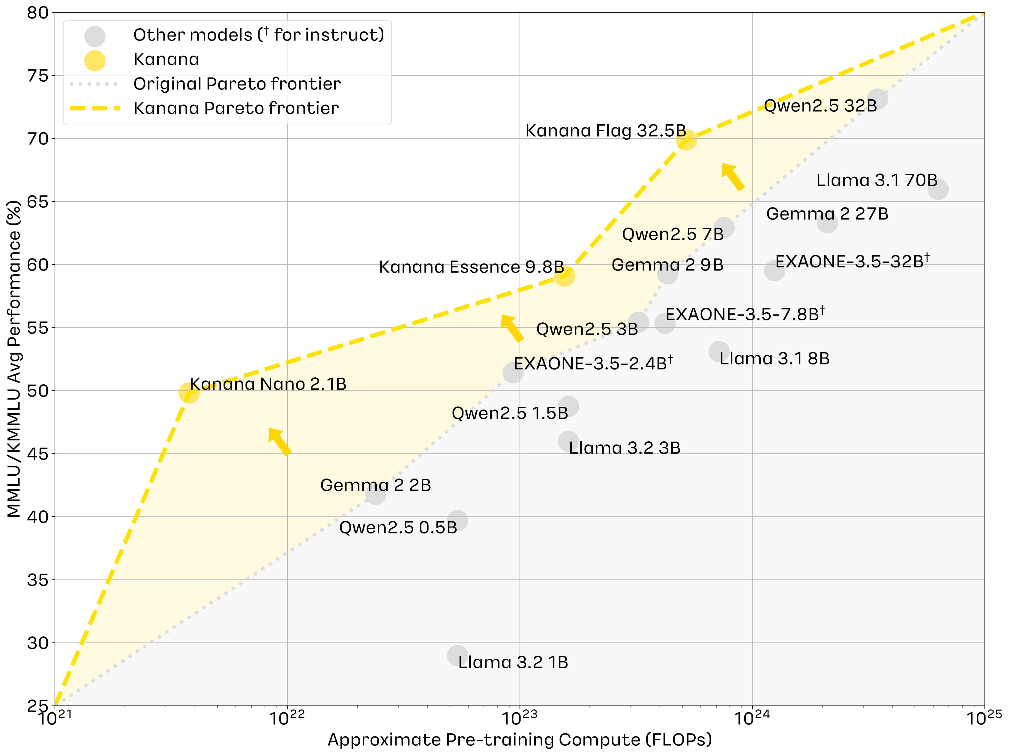 ํจ์จ์ ์ธ ํ์ต ์ธก๋ฉด์์๋ Slamming์ด ๋จ ํ๋์ GPU๋ก ํ๋ฃจ ๋ง์ ์์ฑ ์ธ์ด ๋ชจ๋ธ(SLM)์ ํ์ตํ๋ ํ์ ์ ์ธ ๋ฐฉ๋ฒ์ ์ ์ํ๊ณ , SpargeAttn์ ํฌ์ ์ดํ ์ ์ ํตํด ๋ค์ํ ๋ชจ๋ธ์ ์ถ๋ก ์ ๋น ๋ฅด๊ฒ ๊ฐ์ํํ์ผ๋ฉฐ, Kanana๋ ํ๊ตญ์ด ๋ฐ ์์ด ๋ชจ๋ธ์ ํจ์จ์ ์ผ๋ก ํ์ตํ์ฌ ๋น์ฉ ๋๋น ์ฑ๋ฅ์ ๊ทน๋ํํ์ต๋๋ค.