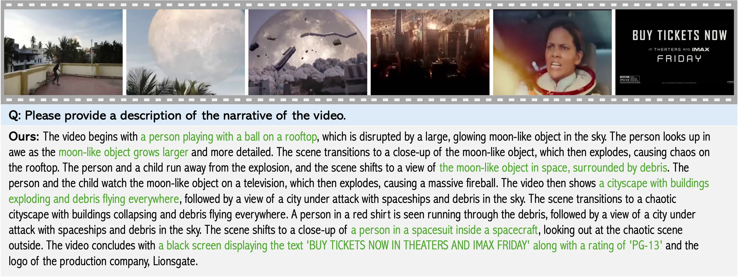 ๊ธฐ์กด ๋น๋์ค ๊ธฐ๋ฐ ์ธ์ด ๋ชจ๋ธ(Video-LLM)์ ๊ฐ ํ๋ ์์ ๋ ๋ฆฝ์ ์ผ๋ก ์ฒ๋ฆฌํ์ฌ ๊ธด ์์์ ์ญ๋์ฑ์ ์ ๋๋ก ๋ฐ์ํ์ง ๋ชปํ์ต๋๋ค. ๋ณธ ๋ ผ๋ฌธ์์๋ ์ด๋ฏธ์ง ์ธ์ฝ๋์ ์ธ์ด ๋ชจ๋ธ ์ฌ์ด์ ์๊ณต๊ฐ ์ ๋ณด๋ฅผ ํตํฉํ๋ ์ ์ฉ ์ธ์ฝ๋๋ฅผ ์ถ๊ฐํ STORM ๋ชจ๋ธ์ ์ ์ํฉ๋๋ค. ์ด ๋ชจ๋ธ์ ์์ ๋ด ํ๋ ์ ๊ฐ์ ์ญ๋์ ์ธ ์ ๋ณด๋ฅผ ํจ๊ณผ์ ์ผ๋ก ์์ถํ์ฌ ๊ณ์ฐ ๋น์ฉ์ ์ต๋ 8๋ฐฐ ์ค์ด๊ณ ์ง์ฐ ์๊ฐ๋ 2.9๋ฐฐ ๊ฐ์์ํค๋ฉด์ ๊ธฐ์กด ๋ชจ๋ธ๋ณด๋ค ๊ธด ์์ ์ดํด ์ฑ๋ฅ์ 5% ์ด์ ๋์ ๋๋ค. ์ด๋ฅผ ํตํด ๊ธด ์์๋ ํจ์จ์ ์ผ๋ก ์ฒ๋ฆฌํ๋ฉด์ ์ฑ๋ฅ๊น์ง ๊ฐ์ ํ๋ ํจ๊ณผ๋ฅผ ์ป์ต๋๋ค.