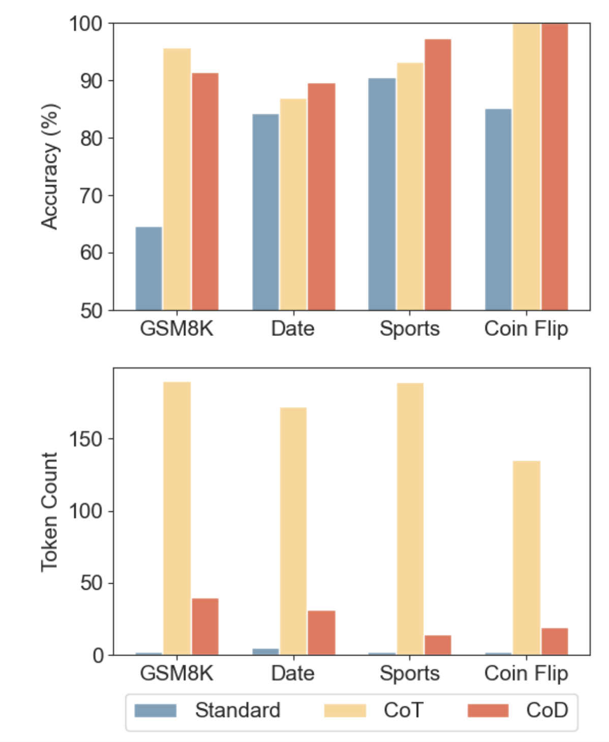 ๊ฑฐ๋ ์ธ์ด ๋ชจ๋ธ(LLM)์ ๋ณต์กํ ๋ฌธ์ ๋ฅผ ํด๊ฒฐํ ๋ ํํ ๊ธด ๋ฌธ์ฅ์ผ๋ก ๋จ๊ณ์ ์ธ ์ถ๋ก (Chain-of-Thought, CoT)์ ์ํํฉ๋๋ค. ๊ทธ๋ฌ๋ ์ฌ๋๋ค์ ์ผ๋ฐ์ ์ผ๋ก ํ์ ์ ๋ณด๋ง ๊ฐ๋จํ ์ ๋ฆฌํ์ฌ ๋ ํจ์จ์ ์ผ๋ก ๋ฌธ์ ๋ฅผ ํ๋๋ค. ๋ณธ ๋ ผ๋ฌธ์์๋ ์ธ๊ฐ์ ๊ฐ๊ฒฐํ ์ฌ๊ณ ๋ฐฉ์์์ ์๊ฐ์ ์ป์ด, ํต์ฌ ์ ๋ณด๋ง์ ์ต์ํ์ ์ค๊ฐ ๋จ๊ณ๋ก ์์ฑํ๋ฉฐ ์ถ๋ก ์ ์ํํ๋ Chain of Draft (CoD) ๋ฐฉ์์ ์ ์ํฉ๋๋ค. CoD๋ ๊ธฐ์กด CoT ๋๋น ํ ํฐ ์ฌ์ฉ๋์ ์ต๋ 7.6% ์์ค์ผ๋ก ์ค์ด๋ฉด์๋ ์ ํ๋๋ ๊ฐ๊ฑฐ๋ ๋ ๋์ ์ฑ๋ฅ์ ๋ณด์ด๋ฉฐ, ๋ค์ํ ์ถ๋ก ์์ ์์ ๋น์ฉ๊ณผ ์๋๋ฅผ ํฌ๊ฒ ๊ฐ์ ํฉ๋๋ค.