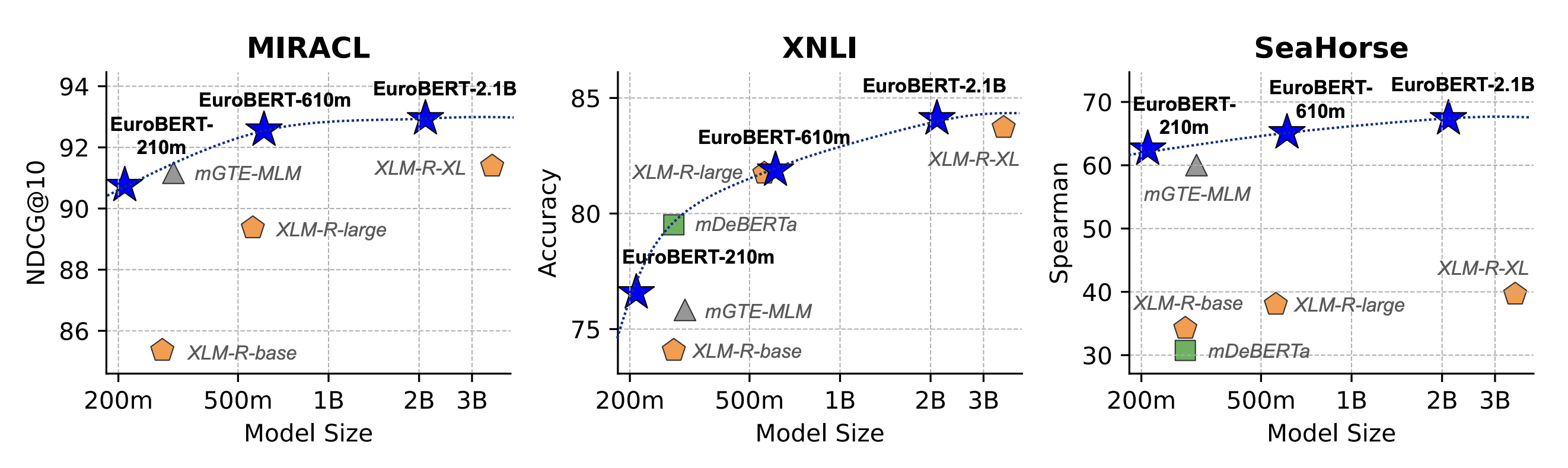 ์ต๊ทผ ์์ฑ(decoder-only) ๋ชจ๋ธ์ ๋ฐ์ ์ผ๋ก ์ธํด ๋ฒ์ฉ ๋ค๊ตญ์ด ๋ฒกํฐ ํํ์ ์ป๋ ๋ฐ ์ฌ์ฉ๋์๋ ๊ธฐ์กด์ ์๋ฐฉํฅ ์ธ์ฝ๋ ๋ชจ๋ธ์ด ์ฃผ๋ชฉ๋ฐ์ง ๋ชปํ๊ณ ์์ต๋๋ค. ๋ณธ ๋ ผ๋ฌธ์์๋ ์ต๊ทผ ์์ฑ ๋ชจ๋ธ ๋ฐ์ ์ ํต์ฌ ํ์ ์ ๋ค๊ตญ์ด ์ธ์ฝ๋ ๊ฐ๋ฐ์ ์ ์ฉํ์ฌ ์ ๋ฝ ๋ฐ ์ ์ธ๊ณ์ ์ผ๋ก ๋๋ฆฌ ์ฌ์ฉ๋๋ ์ธ์ด๋ฅผ ์ง์ํ๋ EuroBERT ๋ชจ๋ธ๊ตฐ์ ์๊ฐํฉ๋๋ค. EuroBERT๋ ๋ค๊ตญ์ด ๋ฅ๋ ฅ, ์ํ ๋ฐ ์ฝ๋ฉ์ ํฌํจํ ๋ค์ํ ์์ ์์ ๊ธฐ์กด ๋ชจ๋ธ์ ์ฑ๋ฅ์ ๋ฐ์ด๋์ผ๋ฉฐ, ์ต๋ 8,192 ํ ํฐ์ ๊ธด ์ํ์ค๋ฅผ ๊ธฐ๋ณธ์ ์ผ๋ก ์ฒ๋ฆฌํ ์ ์์ต๋๋ค. ๋ํ ๋ฐ์ดํฐ์ ๊ตฌ์ฑ ๋ฐ ํ๋ จ ํ์ดํ๋ผ์ธ ๋ฑ ์ค๊ณ ๊ฒฐ์ ๊ณผ์ ์ ์์ธํ ์ ์ํ๊ณ ์ค๊ฐ ํ์ต ์ฒดํฌํฌ์ธํธ๋ฅผ ํฌํจํ์ฌ ๋ชจ๋ธ๊ณผ ํ๋ จ ํ๋ ์์ํฌ๋ฅผ ๊ณต๊ฐํฉ๋๋ค.