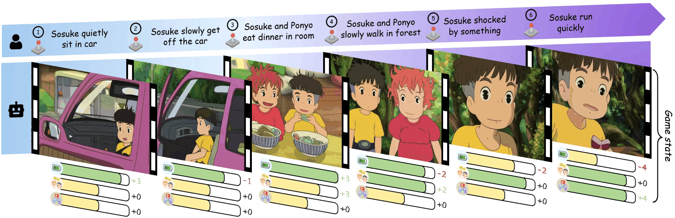 AnimeGamer๋ ๋ค์ ๊ฒ์ ์ํ ์์ธก์ ํตํ ๋ฌดํ ์ ๋๋ฉ์ด์ ๋ผ์ดํ ์๋ฎฌ๋ ์ด์ ์ ์ ์ํฉ๋๋ค. ์ต๊ทผ ์ด๋ฏธ์ง์ ๋น๋์ค ํฉ์ฑ์ ๋ฐ์ ์ ์์ฑํ ๊ฒ์์ ์๋ก์ด ๊ฐ๋ฅ์ฑ์ ์ด์์ผ๋ฉฐ, ํนํ ์ ๋๋ฉ์ด์ ์ํ์ ์บ๋ฆญํฐ๋ฅผ ์ํธ์์ฉ ๊ฐ๋ฅํ ๊ฒ์ ์บ๋ฆญํฐ๋ก ๋ณํํ๋ ์์ฉ์ด ์ฃผ๋ชฉ๋ฐ๊ณ ์์ต๋๋ค. ์ด๋ฅผ ํตํด ํ๋ ์ด์ด๋ ์ธ์ด ์ง์๋ฅผ ํตํด ์ข์ํ๋ ์บ๋ฆญํฐ๋ก์ ์ญ๋์ ์ธ ์ ๋๋ฉ์ด์ ์ธ๊ณ์ ๋ชฐ์ ํ ์ ์์ต๋๋ค. ์ด ์ฐ๊ตฌ๋ ๋ค์ค ๋ชจ๋ฌ ๋ํ ์ธ์ด ๋ชจ๋ธ(MLLM)์ ๊ธฐ๋ฐ์ผ๋ก ๊ฐ ๊ฒ์ ์ํ๋ฅผ ์์ฑํ๋ AnimeGamer๋ฅผ ์ ์ํฉ๋๋ค. ์บ๋ฆญํฐ ์์ง์๊ณผ ์ํ ์ ๋ฐ์ดํธ๋ฅผ ๋ฌ์ฌํ๋ ๋์ ์ ๋๋ฉ์ด์ ์ฅ๋ฉด์ ํฌํจํ ๊ฒ์ ์ํ๋ฅผ ์์ฑํฉ๋๋ค. ๋น๋์ค ํ์ฐ ๋ชจ๋ธ์ ์ฌ์ฉํ์ฌ ๊ณ ํ์ง ๋น๋์ค ํด๋ฆฝ์ผ๋ก ๋์ฝ๋ฉํ ์ ์๋ ์ก์ ์ธ์ ๋ค์ค ๋ชจ๋ฌ ํํ์ ๋์ ํ์ผ๋ฉฐ, ์ญ์ฌ์ ์ ๋๋ฉ์ด์ ์ฅ๋ฉด ํํ์ ์ปจํ ์คํธ๋ก ์ฌ์ฉํ์ฌ ํ์ ํํ์ ์์ธกํจ์ผ๋ก์จ ๋งฅ๋ฝ ์ผ๊ด์ฑ๊ณผ ๋ง์กฑ์ค๋ฌ์ด ์ญ๋์ฑ์ ๊ฐ์ง ๊ฒ์์ ์์ฑํ ์ ์์ต๋๋ค.
