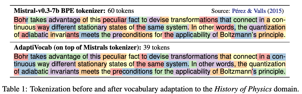 ์ด ์ฐ๊ตฌ๋ ํน์ ๋๋ฉ์ธ์ ์ด์ ์ ๋ง์ถ ๋๊ท๋ชจ ์ธ์ด ๋ชจ๋ธ(LLM)์ ํจ์จ์ฑ์ ํฅ์์ํค๊ธฐ ์ํ AdaptiVocab์ด๋ผ๋ ์ ๊ทผ๋ฒ์ ์๊ฐํฉ๋๋ค. LLM์ ๋ฒ์ฉ ๋ชจ๋ธ๋ก์ ์ธ์์ ์ธ ๋ค์ฌ๋ค๋ฅํจ์ ๋ณด์ฌ์ฃผ์ง๋ง, ํนํ ์๋ ํ๊ท ๋์ฝ๋ฉ์์ ๊ฐ ๋จ๊ณ๋ง๋ค ์๋ฐฉํฅ ํจ์ค๊ฐ ํ์ํ ๋์ ๊ณ์ฐ ์ค๋ฒํค๋๊ฐ ์์ต๋๋ค. AdaptiVocab์ ํ ํฌ๋์ด์ ์ ์ํคํ ์ฒ์ ์ ์ฉํ ์ ์๋ ์ดํ ์ ์์ ์ํ ์๋ํฌ์๋ ๋ฐฉ์์ผ๋ก, ๊ธฐ์กด ํ ํฐ์ ๋๋ฉ์ธ ํนํ๋ n-๊ทธ๋จ ๊ธฐ๋ฐ ํ ํฐ์ผ๋ก ๋์ฒดํ์ฌ ์ ๋ ฅ ์ฒ๋ฆฌ์ ์ถ๋ ฅ ์์ฑ์ ํ์ํ ํ ํฐ ์๋ฅผ ์ค์ ๋๋ค. ์ด ์ ๊ทผ๋ฒ์ ๊ธฐ์กด ์๋ฒ ๋ฉ์ ์ง์ ๊ฐ์ค ์กฐํฉ์ ์ฌ์ฉํ์ฌ ์๋ก์ด n-ํ ํฐ ์๋ฒ ๋ฉ์ ์ด๊ธฐํํ๊ณ , ๋จ์ผ GPU์์ ํจ์จ์ ์ผ๋ก ์ํํ ์ ์๋ ๊ฒฝ๋ ๋ฏธ์ธ ์กฐ์ ๋จ๊ณ๋ฅผ ํ์ฉํฉ๋๋ค. ์ธ ๊ฐ์ง ํ์ ๋๋ฉ์ธ์์ ๋ ๊ฐ์ 7B LLM์ ํ๊ฐํ ๊ฒฐ๊ณผ, AdaptiVocab์ ์ฑ๋ฅ์ ์์์ํค์ง ์์ผ๋ฉด์๋ ํ ํฐ ์ฌ์ฉ๋์ 25% ์ด์ ๊ฐ์์ํค๋ ํจ๊ณผ๋ฅผ ๋ณด์ฌ์ฃผ์์ต๋๋ค.