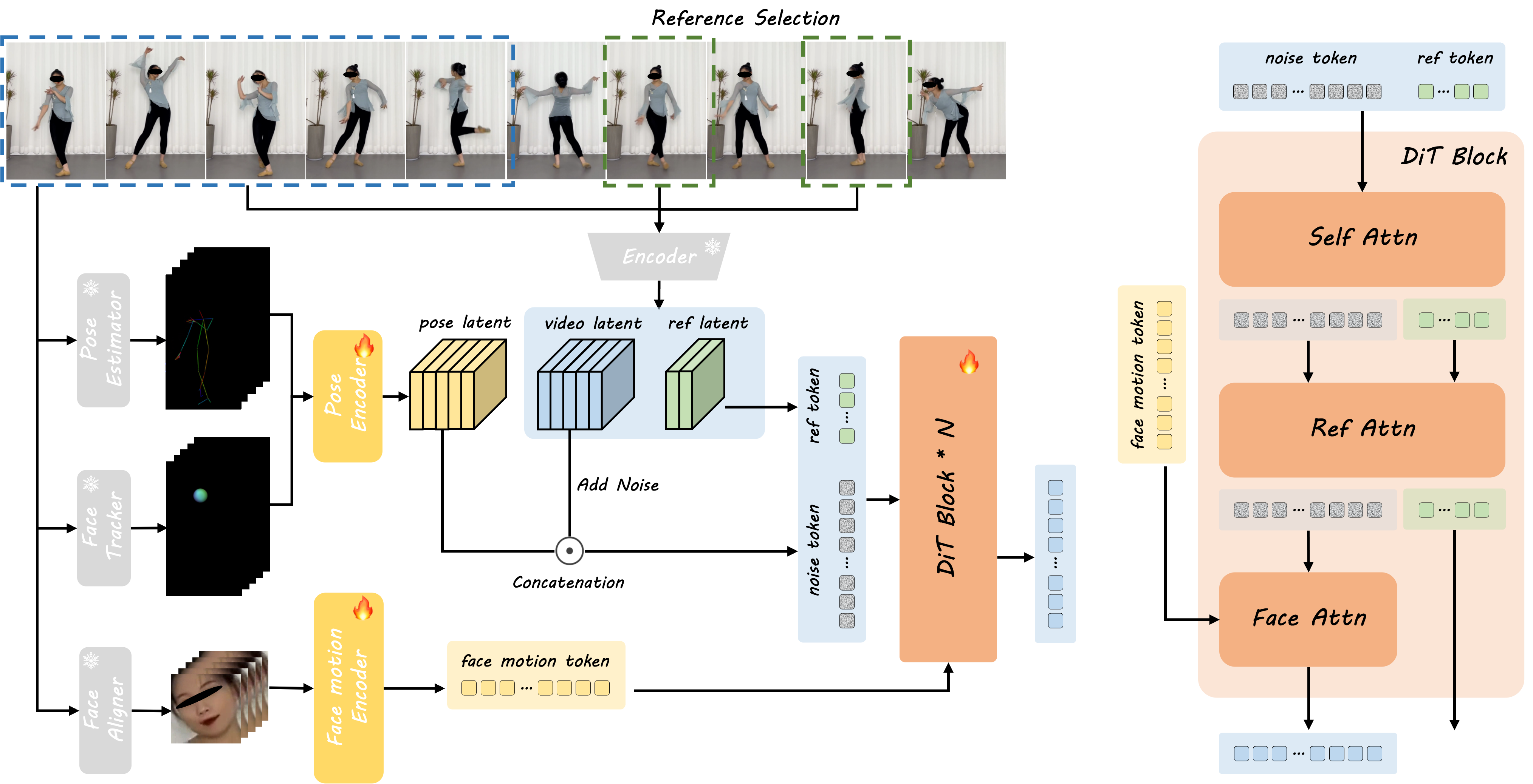 DreamActor-M1์ ํ์ด๋ธ๋ฆฌ๋ ๊ฐ์ด๋๋ฅผ ํตํ ์ ์ฒด์ ์ด๊ณ ํํ๋ ฅ ์์ผ๋ฉฐ ๊ฒฌ๊ณ ํ ์ธ๊ฐ ์ด๋ฏธ์ง ์ ๋๋ฉ์ด์ ์ ์ํ ์ ๊ทผ๋ฒ์ ์ ์ํฉ๋๋ค. ์ต๊ทผ์ ์ด๋ฏธ์ง ๊ธฐ๋ฐ ์ธ๊ฐ ์ ๋๋ฉ์ด์ ๋ฐฉ๋ฒ๋ค์ด ์ฌ์ค์ ์ธ ์ ์ฒด์ ์ผ๊ตด ๋ชจ์ ํฉ์ฑ์ ๋ฌ์ฑํ์ง๋ง, ๋ฏธ์ธํ ์ ์ฒด์ ์ ์ด ๊ฐ๋ฅ์ฑ, ๋ค์ค ๊ท๋ชจ ์ ์์ฑ, ์ฅ๊ธฐ์ ์๊ฐ ์ผ๊ด์ฑ์ ์์ด ์ค์ํ ๊ฒฉ์ฐจ๊ฐ ๋จ์์์ด ํํ๋ ฅ๊ณผ ๊ฒฌ๊ณ ์ฑ์ด ๋ฎ์์ง๋๋ค. ์ด ์ฐ๊ตฌ๋ ์์์ ์ผ๊ตด ํํ, 3D ํค๋ ๊ตฌ์ฒด, 3D ์ ์ฒด ๊ณจ๊ฒฉ์ ํตํฉํ๋ ํ์ด๋ธ๋ฆฌ๋ ์ ์ด ์ ํธ๋ฅผ ์ฌ์ฉํ์ฌ ์ผ๊ตด ํ์ ๊ณผ ์ ์ฒด ์์ง์์ ๊ฐ๋ ฅํ๊ฒ ์ ์ดํ๋ฉด์ ํํ๋ ฅ ์๊ณ ์ ์ฒด์ฑ์ ๋ณด์กดํ๋ ์ ๋๋ฉ์ด์ ์ ์์ฑํฉ๋๋ค. ๋ค์ํ ์ ์ฒด ํฌ์ฆ์ ์ด์ํ๋ถํฐ ์ ์ ๋ทฐ๊น์ง ๋ค์ํ ์ด๋ฏธ์ง ๊ท๋ชจ๋ฅผ ์ฒ๋ฆฌํ๊ธฐ ์ํด ๋ค์ํ ํด์๋์ ๊ท๋ชจ์ ๋ฐ์ดํฐ๋ฅผ ์ฌ์ฉํ ์ ์ง์ ํ๋ จ ์ ๋ต์ ์ฑํํ์ต๋๋ค. ์คํ ๊ฒฐ๊ณผ ์ด ๋ฐฉ๋ฒ์ด ์ต์ ๊ธฐ์ ์ ๋ฅ๊ฐํ๋ฉฐ, ์ด์ํ, ์์ฒด, ์ ์ ์์ฑ์์ ํํ๋ ฅ ์๋ ๊ฒฐ๊ณผ์ ๊ฐ๋ ฅํ ์ฅ๊ธฐ์ ์ผ๊ด์ฑ์ ์ ๊ณตํ๋ค๋ ๊ฒ์ ์ ์ฆํ์ต๋๋ค.