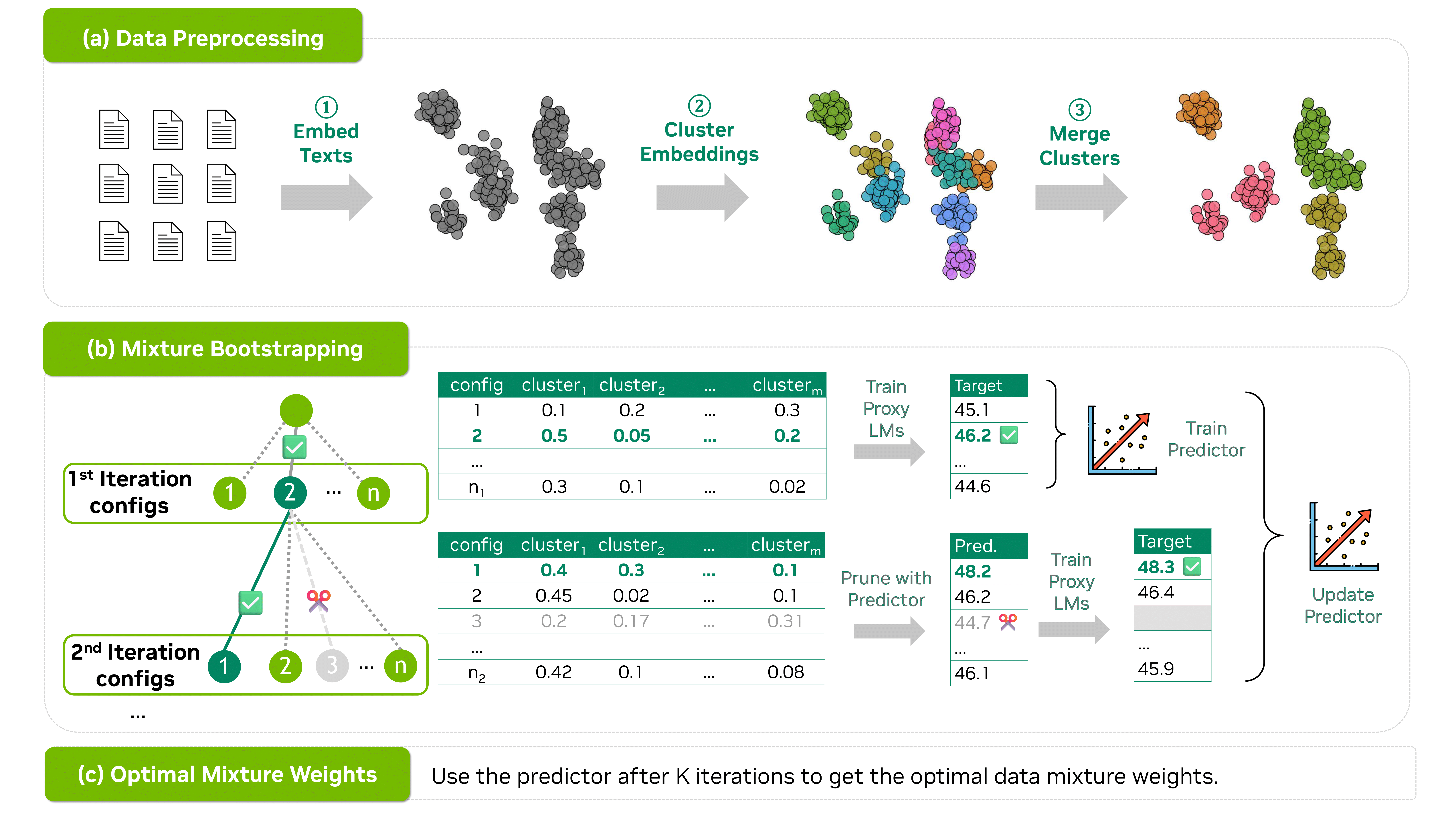 ์ฌ์ ํ๋ จ ๋ฐ์ดํฐ์ ์์ ์ต์ ์ ๋ฐ์ดํฐ ํผํฉ ๋น์จ์ ์ฐพ๋ ๊ฒ์ด ์ด๋ ต๋ค๋ ๋ฌธ์ ๋ฅผ ํด๊ฒฐํ๊ธฐ ์ํด, ์ด ์ฐ๊ตฌ๋ ๋ฐ์ดํฐ์ ์ ์๋ฏธ๋ก ์ ์ผ๋ก ํด๋ฌ์คํฐ๋งํ๊ณ ๋ฐ๋ณต์ ์ผ๋ก ์ต์ ์ ํผํฉ ๋น์จ์ ํ์ํ๋ ์๋ํ๋ ํ๋ ์์ํฌ 'CLIMB'๋ฅผ ์ ์ํฉ๋๋ค. CLIMB์ ํตํด ์ป์ ๋ฐ์ดํฐ ํผํฉ์ผ๋ก ํ๋ จ๋ 1B ๋ชจ๋ธ์ ๊ธฐ์กด ์ต๊ณ ๋ชจ๋ธ๋ณด๋ค ๋ฐ์ด๋ ์ฑ๋ฅ์ ๋ณด์์ผ๋ฉฐ, ํน์ ๋๋ฉ์ธ ์ต์ ํ ์ ๋ ํฐ ์ฑ๋ฅ ํฅ์์ ํ์ธํ๊ณ , ์ฐ๊ตฌ ์ปค๋ฎค๋ํฐ๋ฅผ ์ํด ๋๊ท๋ชจ ํด๋ฌ์คํฐ๋ง๋ ๋ฐ์ดํฐ์ (ClimbLab)๊ณผ ํจ์จ์ ์ธ ์ฌ์ ํ๋ จ์ฉ ๋ฐ์ดํฐ์ (ClimbMix)์ ๊ณต๊ฐํ์ต๋๋ค.