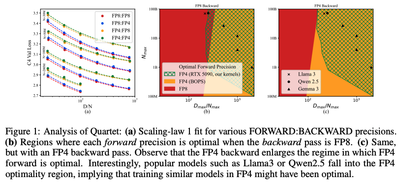 ผ๋ฌธ์ ํ๋์จ์ด ์ง์ FP4 ํ์ต์ ์ฒด๊ณ์ ์ผ๋ก ์กฐ์ฌํ๊ณ , ๋ชจ๋ ์ฃผ์ ๊ณ์ฐ(์: ์ ํ ๊ณ์ธต)์ด ์ ์ ๋ฐ๋๋ก ์ํ๋๋ ์ ํํ ์๋ํฌ์๋ FP4 ํ์ต์ ๊ฐ๋ฅํ๊ฒ ํ๋ ์๋ก์ด ์ ๊ทผ ๋ฐฉ์์ธ Quartet์ ์๊ฐํ๋ค. Llama ์ ํ ๋ชจ๋ธ์ ๋ํ ๊ด๋ฒ์ํ ํ๊ฐ๋ฅผ ํตํด ๋ค์ํ ๋นํธ ํญ์ ๊ฑธ์ณ ์ฑ๋ฅ ์ ์ถฉ์์ ์ ๋ํํ๋ ์๋ก์ด ์ ์ ๋ฐ๋ ์ค์ผ์ผ๋ง ๋ฒ์น์ ๋ฐํ๋ด๊ณ , ์ ํ๋ ๋ ๊ณ์ฐ ์ธก๋ฉด์์ "๊ฑฐ์ ์ต์ "์ธ ์ ์ ๋ฐ๋ ํ์ต ๊ธฐ์ ์ธ Quartet์ ์๋ณํ๋ค. NVIDIA Blackwell GPU์ ๋ง์ถคํ๋ ์ต์ ํ๋ CUDA ์ปค๋์ ์ฌ์ฉํ์ฌ Quartet์ ๊ตฌํํ๊ณ , FP4 ์ ๋ฐ๋์ ๋ํ ์ต์ฒจ๋จ ์ ํ๋๋ฅผ ๋ฌ์ฑํ์ฌ ์์ญ์ต ๊ท๋ชจ ๋ชจ๋ธ์ ์ฑ๊ณต์ ์ผ๋ก ํ์ตํ ์ ์์์ ๋ณด์ฌ์ค๋ค. ์ด ๋ฐฉ๋ฒ์ ์์ FP4 ๊ธฐ๋ฐ ํ์ต์ด ํ์ค ์ ๋ฐ๋ ๋ฐ FP8 ํ์ต์ ๋ํ ๊ฒฝ์๋ ฅ ์๋ ๋์์์ ์