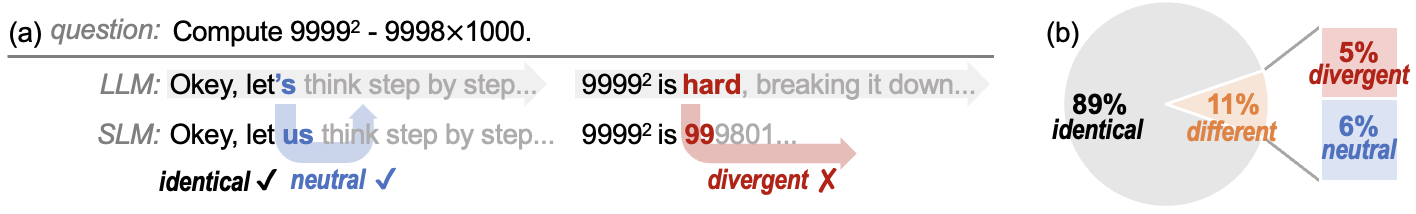 ผ๋ฌธ์ LLM๊ณผ SLM ๊ฐ์ ์ถ๋ก ๊ฒฝ๋ก๋ฅผ ์ค์ ๋ก ๋ถ๊ธฐ์ํค๋ ํ ํฐ์ ๊ทน์์์ ๋ถ๊ณผํ๋ค๋ ์ฌ์ค์ ๋ฐํ๋๋ค. ๋๋ถ๋ถ์ ์์ฑ๋ ํ ํฐ์ ๋์ผํ๊ฑฐ๋ ์ฝ์ด ๋๋ ํํ์ ์ฌ์ํ ์ฐจ์ด์ ๊ฐ์ ์ค๋ฆฝ์ ์ธ ์ฐจ์ด๋ฅผ ๋ณด์ธ๋ค. ์ด๋ฌํ ํต์ฐฐ์ ํ์ฉํ์ฌ, Roads to Rome (R2R)์ด๋ผ๋ ์ ๊ฒฝ๋ง ํ ํฐ ๋ผ์ฐํ