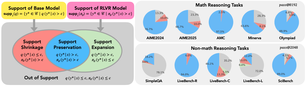 ๊ฒ์ฆ ๊ฐ๋ฅํ ๋ณด์์ ํตํ ๊ฐํํ์ต(RLVR)์ ํ๊ณ์ ๊ดํ ์ฐ๊ตฌ๋ RLVR์ด ๋ชจ๋ธ์ ์ถ๋ก ๊ฒฝ๊ณ๋ฅผ ์ค์ ๋ก ํ์ฅํ๋์ง์ ๋ํ ์ค์ํ ์ง๋ฌธ์ ์ ๊ธฐํ๋ค. ์ด๋ก ์ ๊ด์ ์์ RLVR์ ๊ธฐ๋ณธ ๋ชจ๋ธ์ ์ง์์ ์ ํ๋์ด ์ด๊ธฐ ํ๋ฅ ์ด 0์ธ ์๋ฃจ์