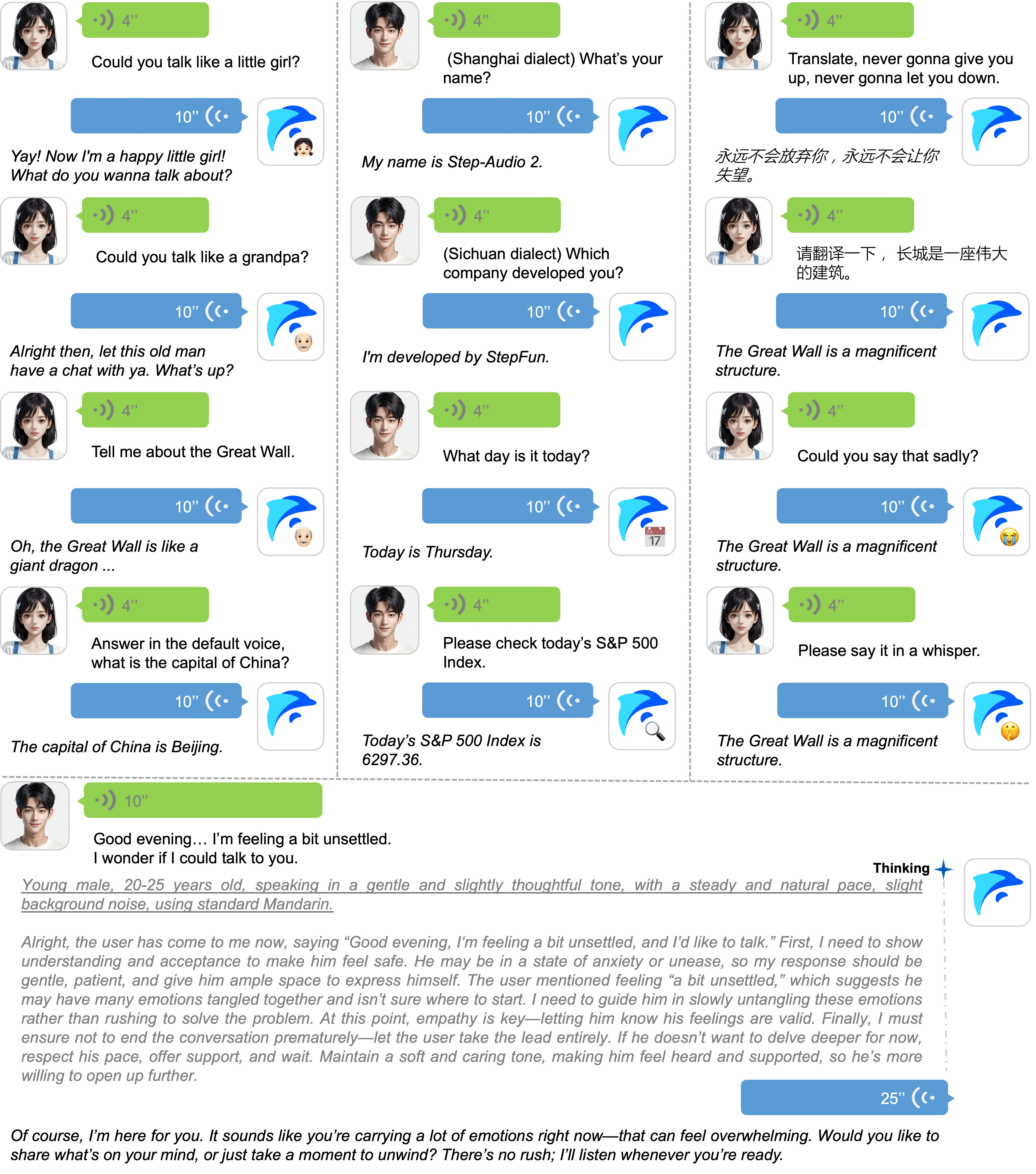์์ค์ ์ค๋์ค ์ดํด ๋ฐ ์์ฑ ๋ํ๋ฅผ ์ํ ์๋ํฌ์๋ ๋ค์ค ๋ชจ๋ฌ ๋ํ ์ธ์ด ๋ชจ๋ธ์ด๋ค. ์ ์ฌ ์ค๋์ค ์ธ์ฝ๋ ํตํฉ๊ณผ ์ถ๋ก ์ค์ฌ ๊ฐํํ์ต์ ํตํด ์๋ ์์ฑ ์ธ์๊ณผ ์ค๋์ค ์ดํด์์ ๋ฐ์ด๋ ์ฑ๋ฅ์ ๋ฌ์ฑํ์ผ๋ฉฐ, ์ด์ฐ ์ค๋์ค ํ ํฐ ์์ฑ์ ์ธ์ด ๋ชจ๋ธ๋ง์ ํตํฉํ์ฌ ๋งํ๊ธฐ ์คํ์ผ, ๊ฐ์ ๋ฑ ์ค์ธ์ด์ ์ ๋ณด์ ํจ๊ณผ์ ์ผ๋ก ๋ฐ์ํ๋ค. ๊ฒ์ ์ฆ๊ฐ ์์ฑ(RAG)์ ํตํฉํ๊ณ ์น ๊ฒ์, ์ค๋์ค ๊ฒ์ ๋ฑ ์ธ๋ถ ๋๊ตฌ ํธ์ถ ๊ธฐ๋ฅ์ ์ ๊ณตํ๋ฉฐ, ์๋ฐฑ๋ง ์๊ฐ์ ์์ฑ ๋ฐ ์ค๋์ค ๋ฐ์ดํฐ๋ก ํ๋ จ๋์ด ๋ค์ํ ์ค๋์ค ์ดํด ๋ฐ ๋ํ ๋ฒค์น๋งํฌ์์ ์ต๊ณ ์์ค์ ์ฑ๋ฅ์ ๋ฌ์ฑํ๋ค.