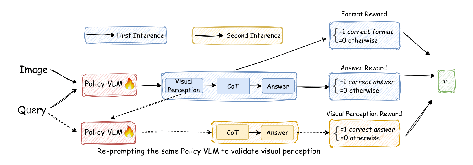 ๋ง์ ์ด์ฉํด ์ง๋ฌธ์ ๋ตํ๋๋ก ํ๋ค. ์ด ๊ณผ์ ์ ์ฑ๊ณต ์ฌ๋ถ๋ฅผ ๋ด๋ถ์ ์ธ ๋ณด์ ์ ํธ๋ก ํ์ฉํจ์ผ๋ก์จ, ์ธ๋ถ ๋ฐ์ดํฐ ์์ด๋ ๋ชจ๋ธ์ ์๊ฐ์ ์ธ์ ๋ฅ๋ ฅ์ ํจ๊ณผ์ ์ผ๋ก ๊ฐํ์ํจ๋ค.