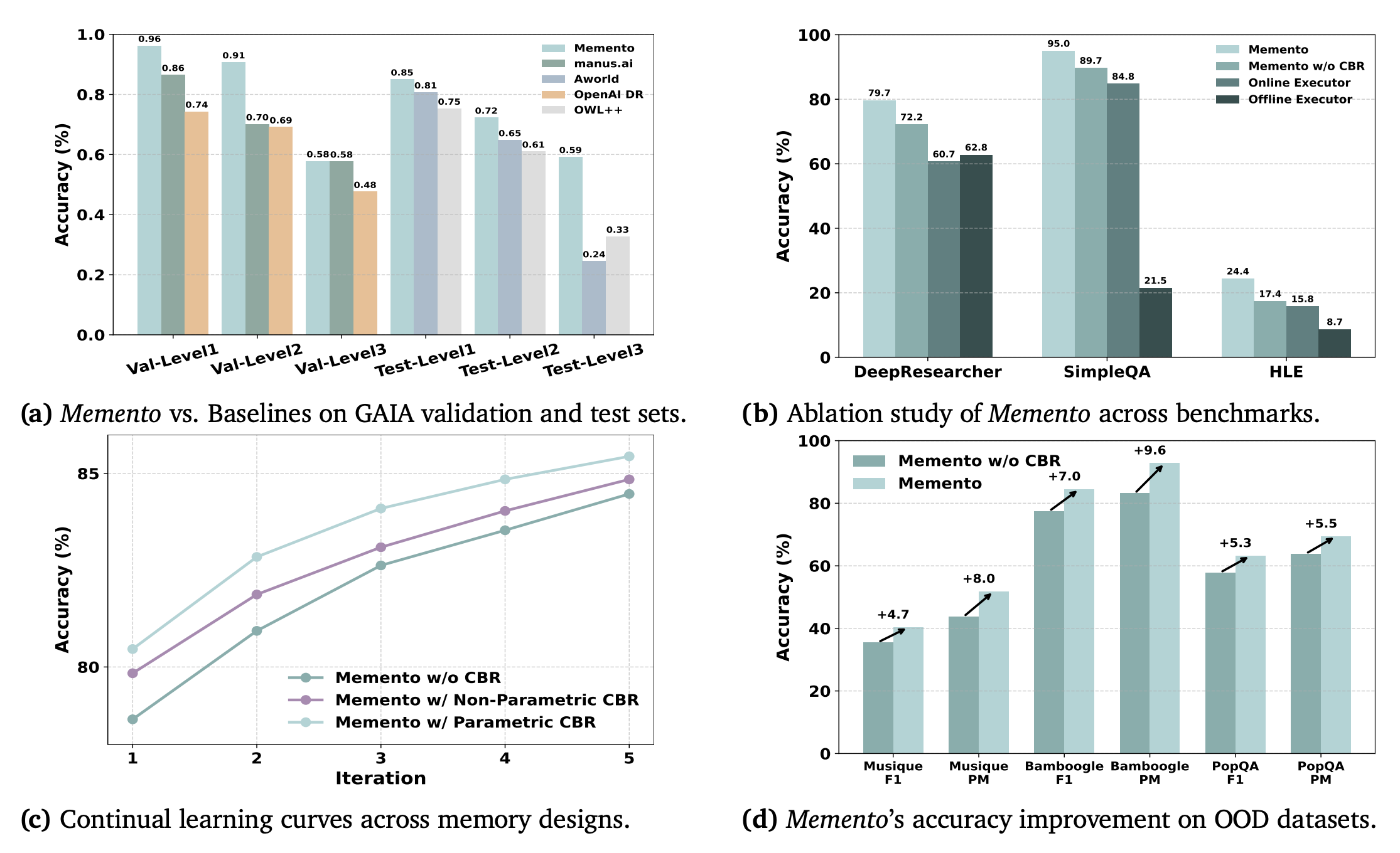 ์ ํตํด ํ์ตํ๋ฉฐ, ํ๊ฒฝ ํผ๋๋ฐฑ์ ๋ฐ๋ผ LLM์ ๊ฐ์ค์น๊ฐ ์๋ ๋ฉ๋ชจ๋ฆฌ๋ฅผ ์์ ํ๋ ๋ฐฉ์์ ์ฌ์ฉํ๋ค. ์ด ์ ๊ทผ๋ฒ์ ๊ณ์ฐ์ ์ผ๋ก ๋งค์ฐ ํจ์จ์ ์ด๋ฉด์๋ ๋ฐ์ด๋ ์ฑ๋ฅ์ ๋ณด์ด๋ฉฐ, ํนํ ๋ถํฌ๋ฅผ ๋ฒ์ด๋ ์๋ก์ด ์์