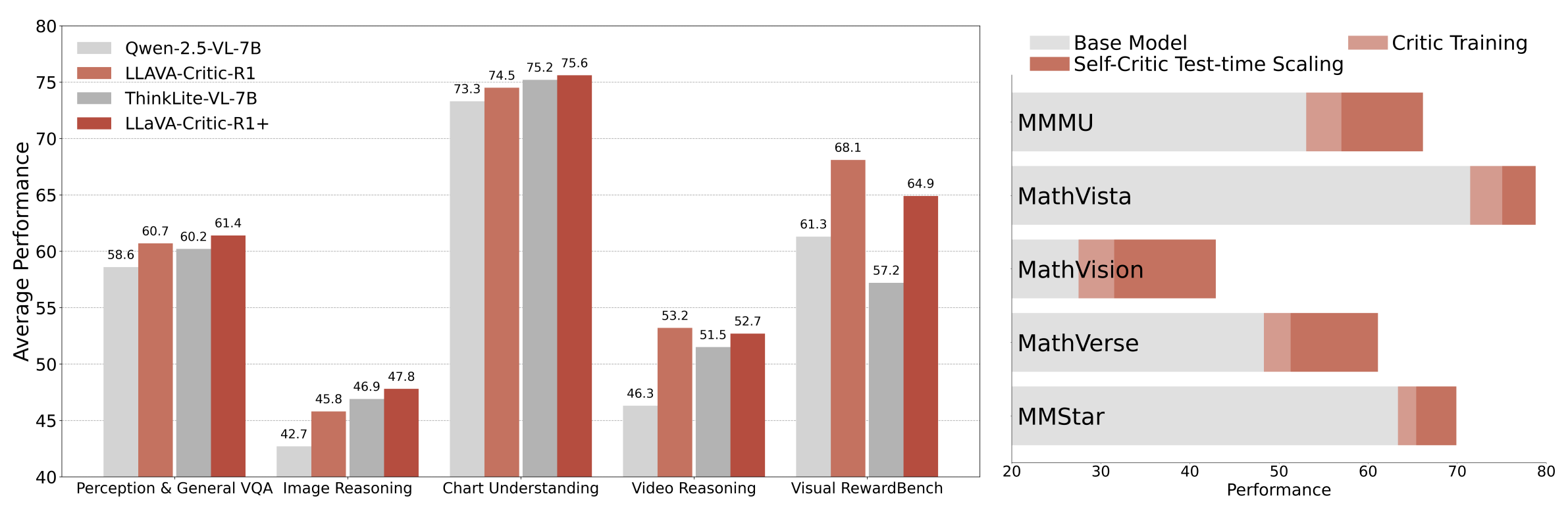 (Policy) ๋ชจ๋ธ'์ ๋ถ๋ฆฌํ๋ ๊ธฐ์กด ๊ดํ์ ๋์ ํ๋ ์ฐ๊ตฌ์ด๋ค. ์ฐ๊ตฌ์ง์ ๋นํ๊ฐ ๋ชจ๋ธ ํ์ต์ฉ ๋ฐ์ดํฐ๋ฅผ ํ์ฉํด ์์ฑ ๋ชจ๋ธ์ ์ง์ ๊ฐํํ์ต์ ์ ์ฉํ์ฌ, ๋นํ๊ณผ ์์ฑ์ ๋ชจ๋ ์ํํ๋ ํตํฉ ๋ชจ๋ธ LLaVA-Critic-R1์ ๋ง๋ค์๋ค. ๋๋๊ฒ๋ ์ด ๋ชจ๋ธ์ ๋ฐ์ด๋ ๋นํ๊ฐ์ผ ๋ฟ๋ง ์๋๋ผ, ์ ๋ฌธ์ ์ธ ์์ฑ ๋ชจ๋ธ๋ค๊ณผ ๋๋ฑํ๊ฑฐ๋ ๋ ๋์ ์ฑ๋ฅ์ ๋ณด์์ผ๋ฉฐ, ์ถ๋ก ์ '์๊ฐ ๋นํ'์ ํตํด ์ถ๊ฐ ํ์ต ์์ด๋ ์ฑ๋ฅ์ ํฌ๊ฒ ํฅ์์ํฌ ์ ์์์ ์ฆ๋ช