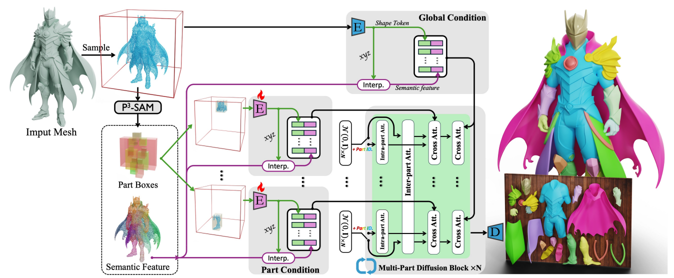 ์ ์ด๋ ค์์ด ์์๋ค. 'X-Part'๋ 3D ๊ฐ์ฒด๋ฅผ ์์์ ๋ค๋ฆฌ, ๋ฑ๋ฐ์ด์ฒ๋ผ ๊ตฌ์กฐ์ ์ผ๋ก ์ผ๊ด๋๊ณ ์๋ฏธ ์๋ ์ฌ๋ฌ ๋ถํ์ผ๋ก ์ ๊ตํ๊ฒ ๋ถํดํ๋ ์๋ก์ด ์์ฑ ๋ชจ๋ธ์ด๋ค. ์ด๋ฅผ ํตํด ๋ถํ ๋จ์ 3D ์์ฑ ๋ถ์ผ์์ ์ต๊ณ ์์ค์ ์ฑ๋ฅ์ ๋ฌ์ฑํ์ผ๋ฉฐ, ์ฌ์ฉ์๊ฐ ์ฝ๊ฒ ํธ์งํ ์ ์๋ ์ ์ ํ๊ฒฝ์ ์ ๊ณตํ์ฌ ์์
