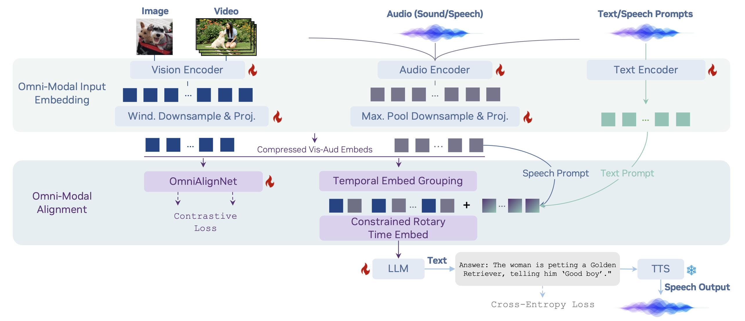 ผ๋ฌธ์ ์ฌ๋ฌ ์์์ ๋์์ ์ธ์ํ๊ณ ์ดํดํ๋ ๊ฐ๋ ฅํ ์คํ์์ค ์ด๋๋ชจ๋ฌ LLM์ธ OmniVinci๋ฅผ ์๊ฐํ๋ค. ์ด ๋ชจ๋ธ์ ๋น์ ๊ณผ ์ค๋์ค ์๋ฒ ๋ฉ ์ ๋ ฌ์ ๊ฐํํ๋ 'OmniAlignNet', ์ ํธ ๊ฐ์ ์๋์ ์๊ฐ ์์๋ฅผ ํฌ์ฐฉํ๋ 'Temporal Embedding Grouping', ์ ๋์ ์๊ฐ ์ ๋ณด๋ฅผ ์ธ์ฝ๋ฉํ๋ 'Constrained Rotary Time Embedding'์ด๋ผ๋ ์ธ ๊ฐ์ง ์๋ก์ด ์ํคํ