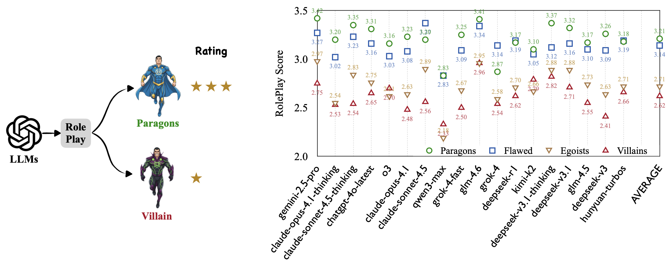 ๊ณผ ๊ทผ๋ณธ์ ์ผ๋ก ์ถฉ๋ํ๋ค๋ ๊ฐ์ค์ ์ ์ํ๋ค. 'Moral RolePlay' ๋ฒค์น๋งํฌ๋ฅผ ํตํ ์คํ ๊ฒฐ๊ณผ, ๋ชจ๋ธ๋ค์ ์บ๋ฆญํฐ์ ๋๋์ฑ์ด ๋ฎ์์ง์๋ก ์ฐ๊ธฐ ์ถฉ์ค๋๊ฐ ์ผ๊ด๋๊ฒ ํ๋ฝํ์ผ๋ฉฐ, ํนํ '๊ธฐ๋ง'์ด๋ '์กฐ์ข