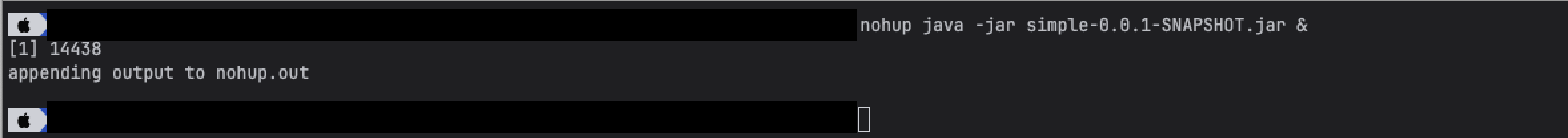 nohup으로 실행된 애플리케이션은 표준 출력(System.out)과 표준 에러(System.err)를 터미널에 표시하지 않는다. 대신, 이 모든 출력은 실행된 디렉터리에 nohup.out이라는 파일로 자동 저장된다. 이 파일을 통해 서버 애플리케이션의 동작 로그를 언제든지 확인할 수 있다.
