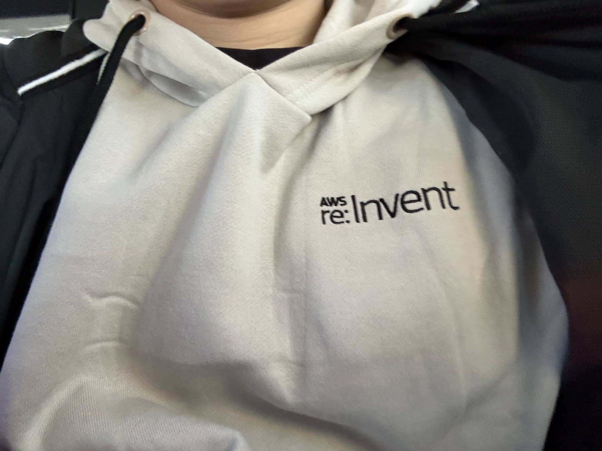 엑스포 뿐만 아니라 AWS에서 제공하는 SWAG도 있어 뱃지 ID 수령받은 장소에 가서 SWAG를 수령받았습니다. Day1 때는 기모재질이 들어가 후드티를 주더라구요 ^^