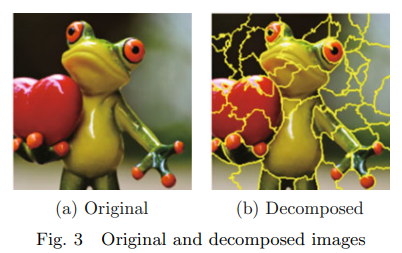 - 먼저, 왼쪽의 이미지를 연속적인 픽셀을 기반으로 해석 가능한 구성 요소로 분할.